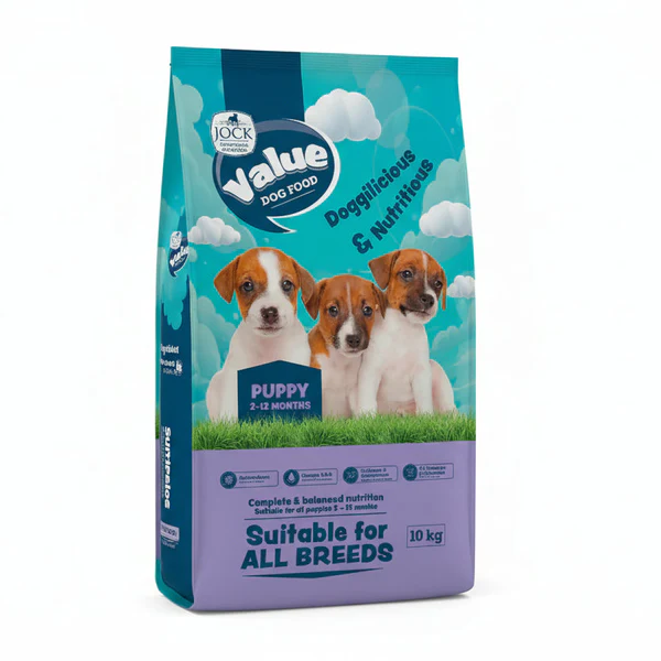 JOCK Value Puppy is specially formulated to meet the unique needs of growing pups aged 2–12 months, delivering complete and balanced nutrition that helps them develop into strong, healthy dogs.